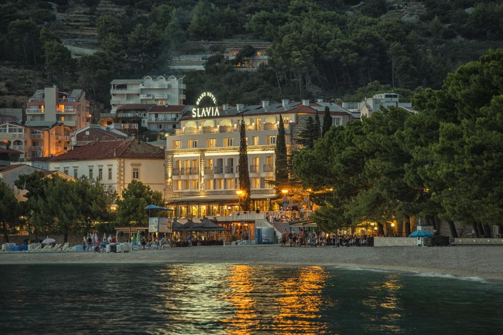 Grand Hotel Slaviasmješten je u Baškoj Vodi, popularnom ljetovalištu na Makarskoj Rivijeri, svega nekoliko koraka od mora i plaže koja nosi Plavu zastavu.