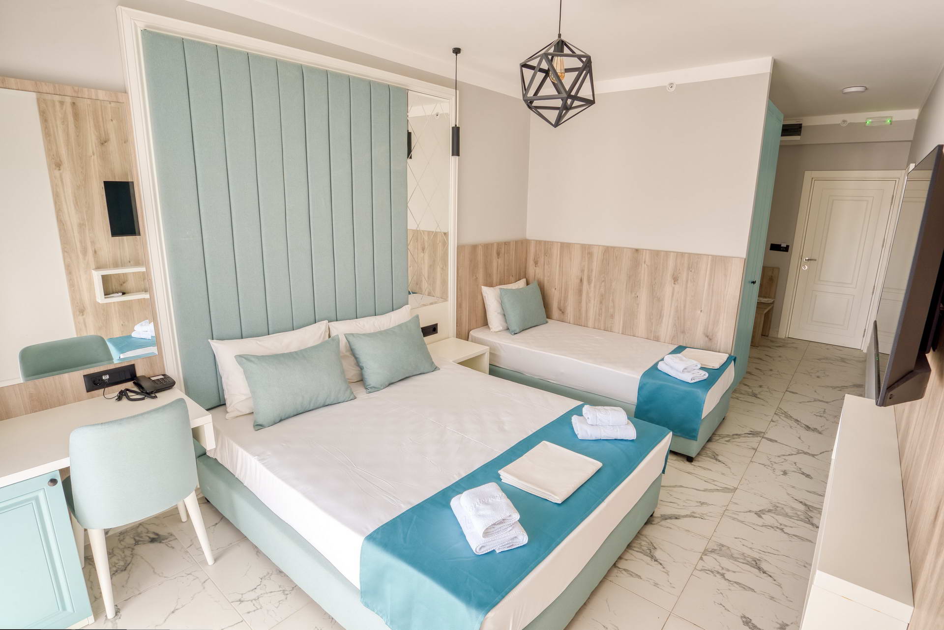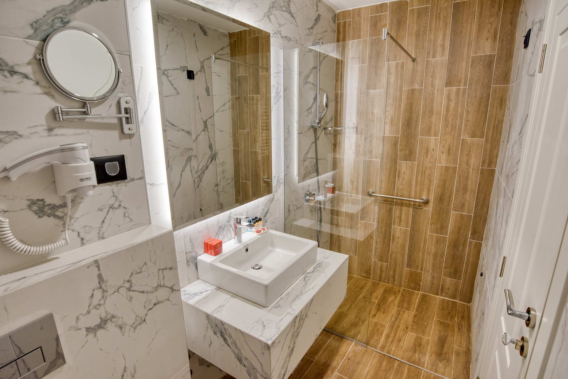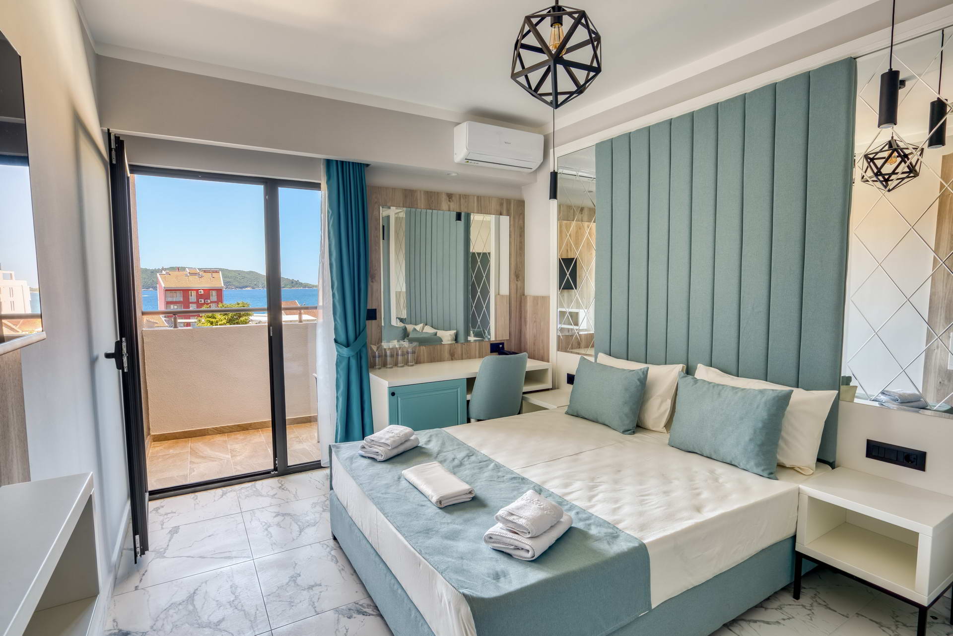 Svaka soba je lijepo uređena sa kupatilom (walk-in tušem), TV-om, klimom, sefom, mini-barom i Wi-Fi.