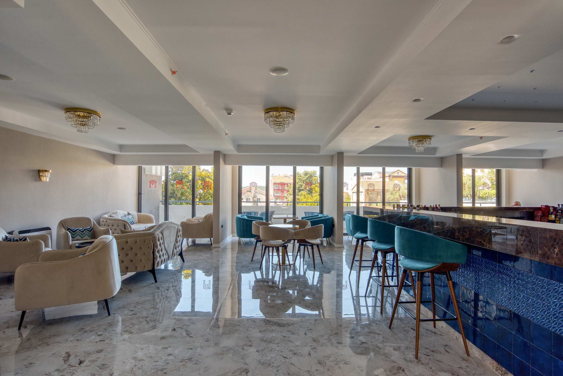 Hotelski restoran, Lobby bar, Pool bar, Sky bar; 2 finske saune, parno kupatilo, poluotvoreni bazen sa ležaljkama, dječiji bazen, terapeutska soba sa tretmanima, masaže; unutrašnji i vanjski dječiji kutak.