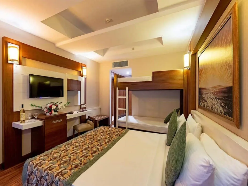 U slučaju rezervacije trokrevetne sobe, popust na treći ležaj je uključen u cijenu i agencija nije u mogućnosti garantovati tri standardna ležaja! Tokom sezone, hotel ima pravo da promjeni neke od sadržaja bez prethodnog obavještavanja.