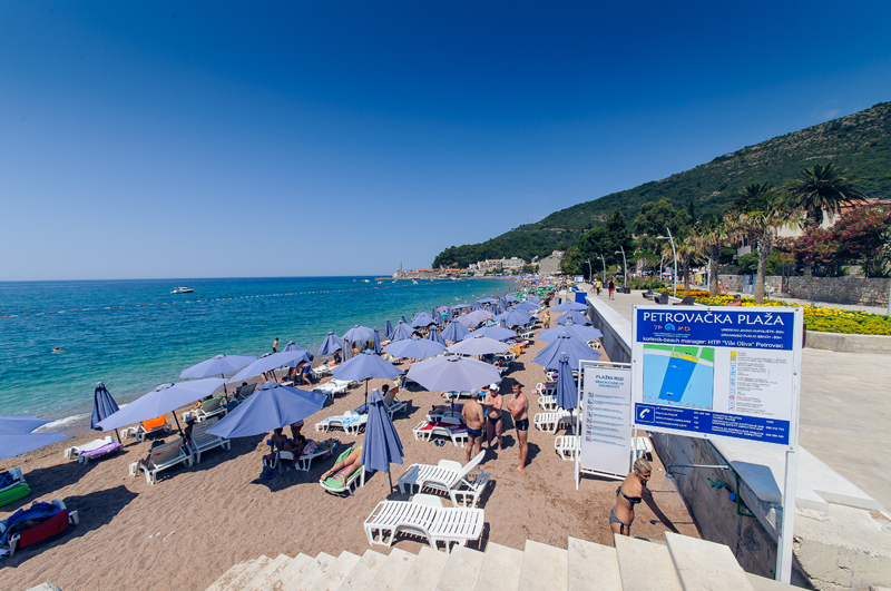 Na samo 80 m od Vila Oliva nalazi se čuvena pjeskovita petrovačka plaža dugačka 600 m. Dio plaže, kapaciteta 150 ležaljki, je rezervisan za goste hotela po specijalnim tarifama.